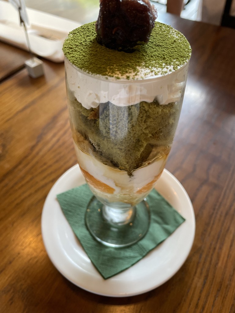 お昼は職トレの先輩方と「Evergreen Cafe」に行き、抹茶パフェを頂きました。